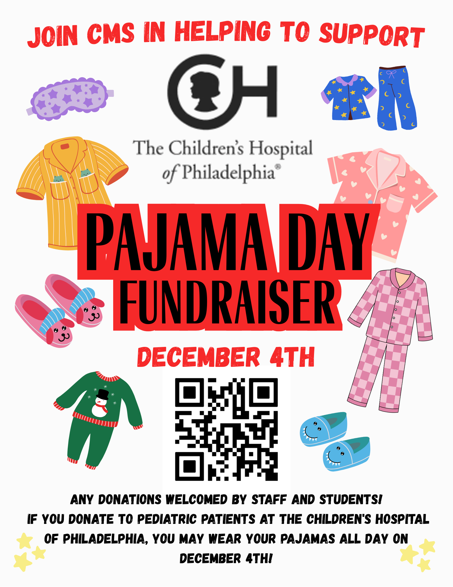 CMS is teaming up to support the Children’s Hospital of Philadelphia through our Pajama Day Fundraiser! Our school goal is $200 — and if we reach it, we’ll celebrate with a schoolwide Pajama Day on...